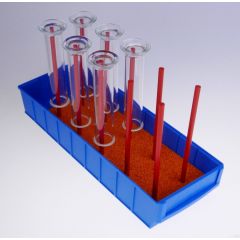 4. Trocknungsgestell für Bechergläser 100ml, mit 21 Stäben, Maße der Platte: 420 x 165 mm, Höhe der Stäbe: 150 mm